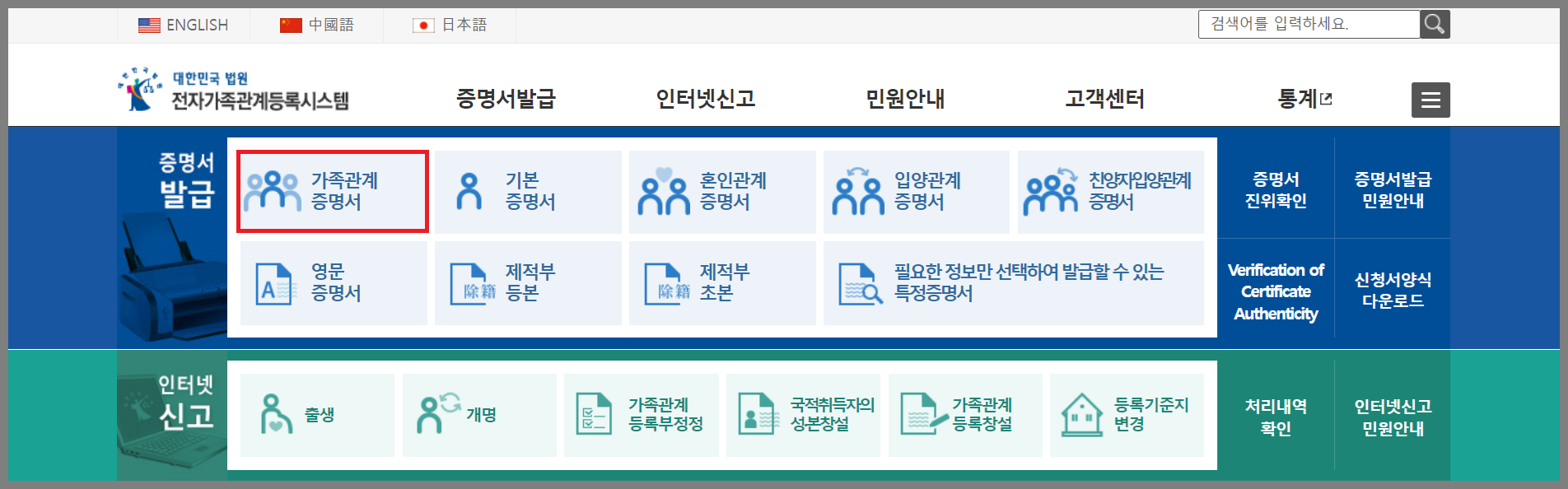 대법원 전자가족관계등록시스템( efamily.scourt.go.kr )바로가기