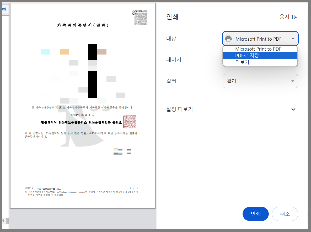 가족관계증명서 스마트폰 발급받기 ⭣ ⭣ ⭣