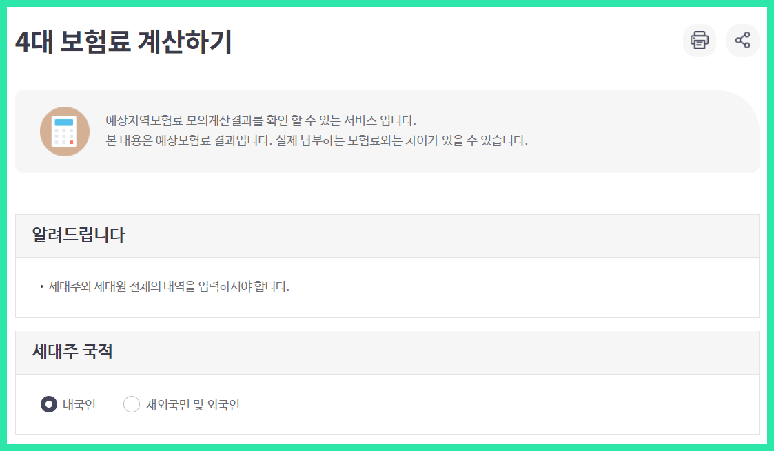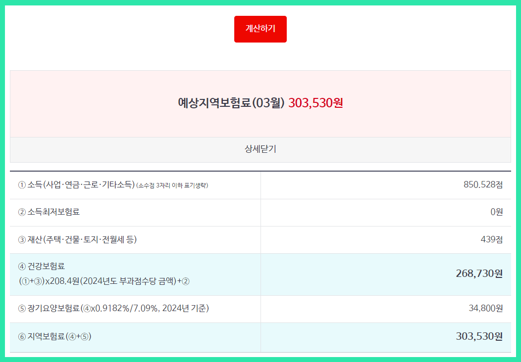 4. 계산하기 클릭▶ 예상지역보험료가 바로 조회됩니다.