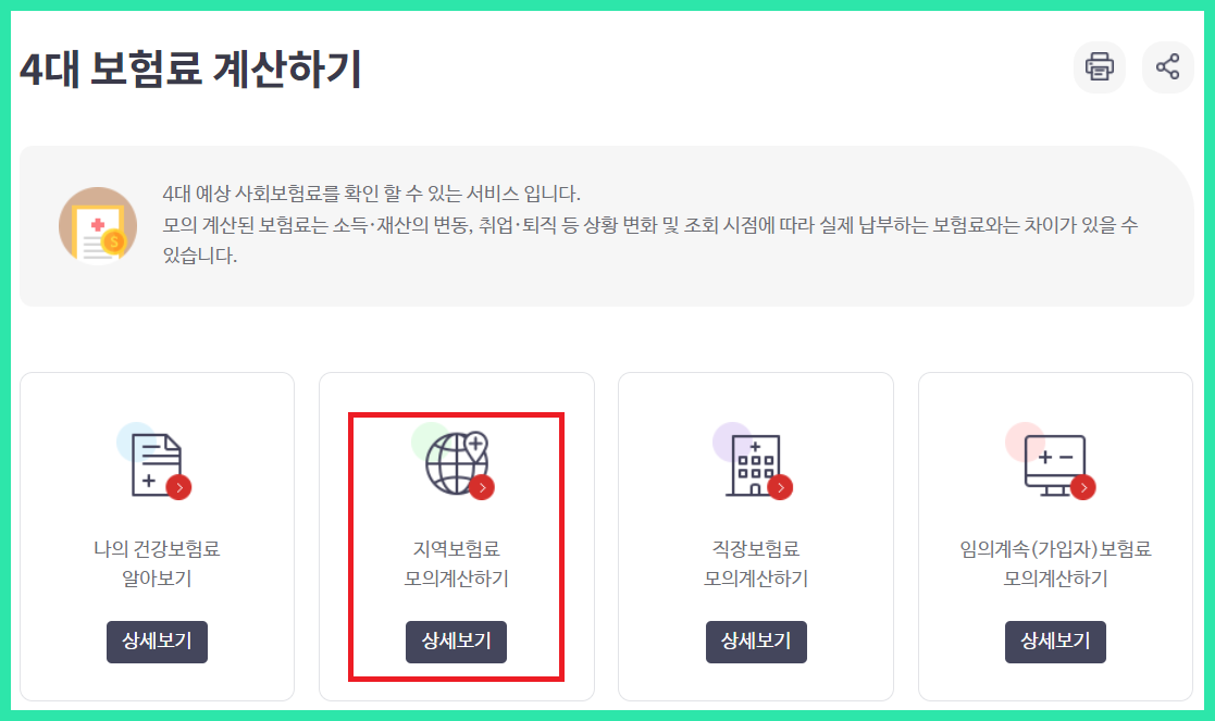 2. 지역보험료 모의계산하기 클릭