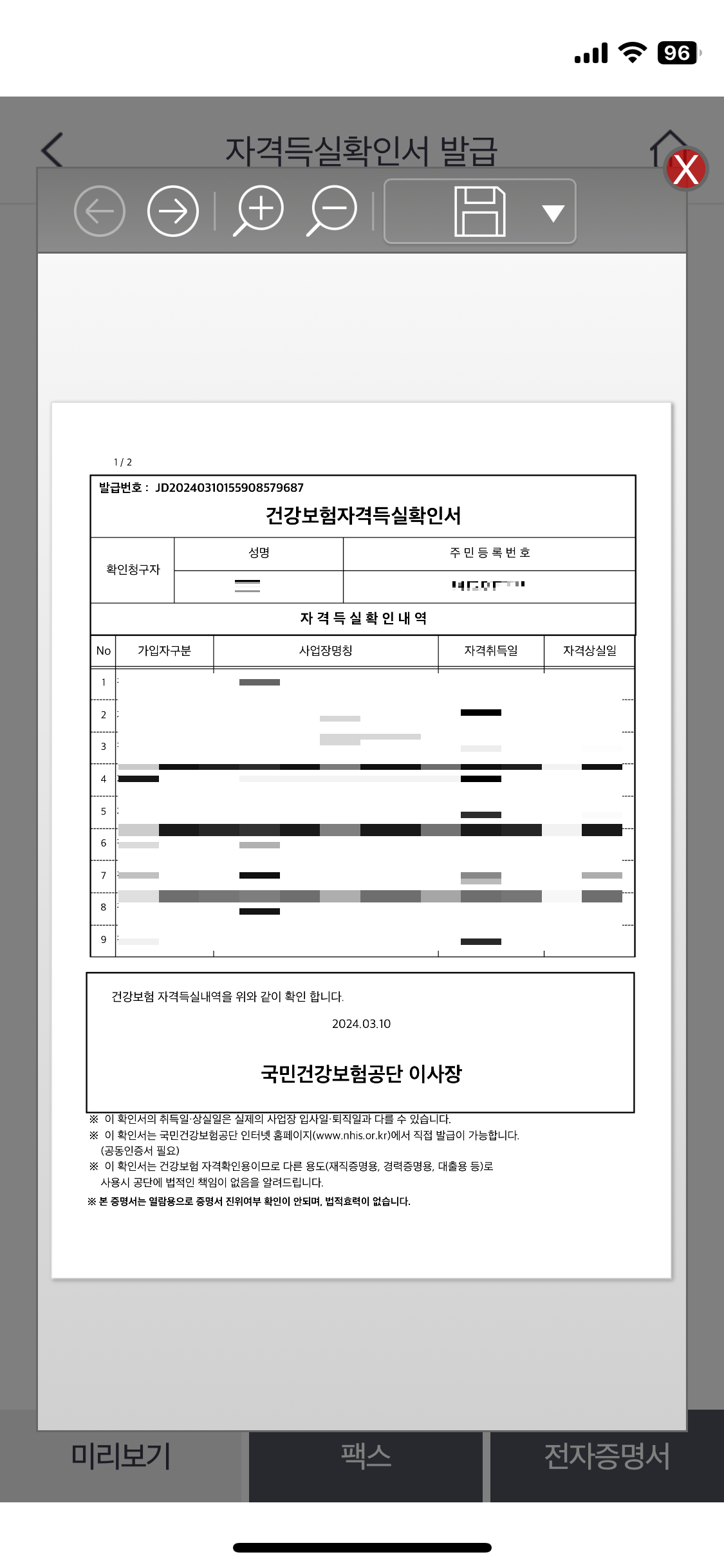 건강보험자격득실확인서 모바일 발급