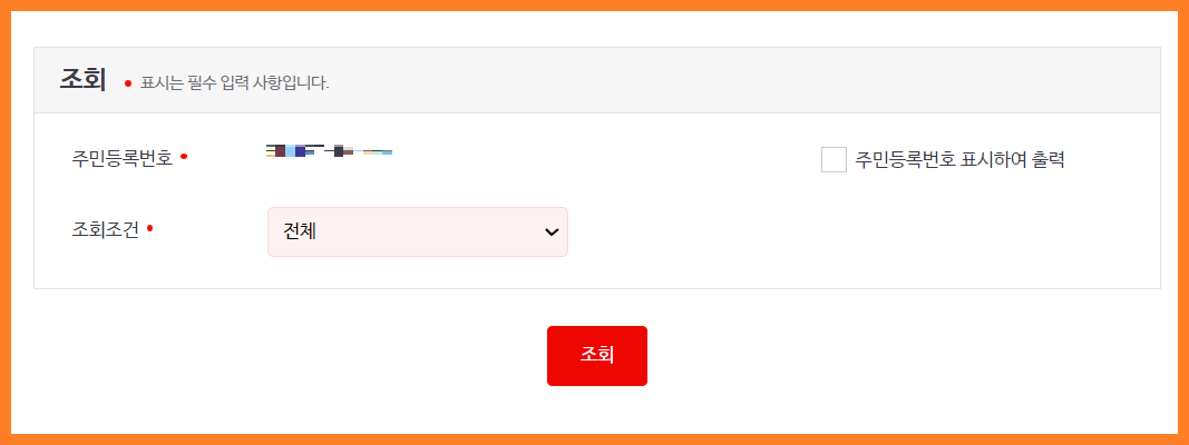 5. 주민등록번호 표시 유무 체크▶ 조회조건 선택
