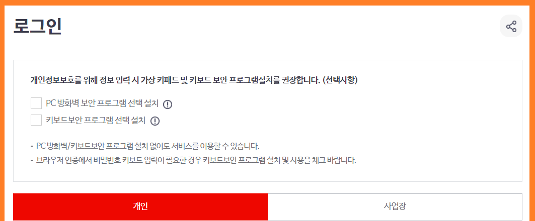 2. 로그인 화면▶ 간편 인증 또는 공동·금융 인증서를 이용하여 로그인 진행