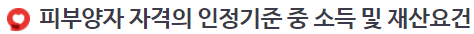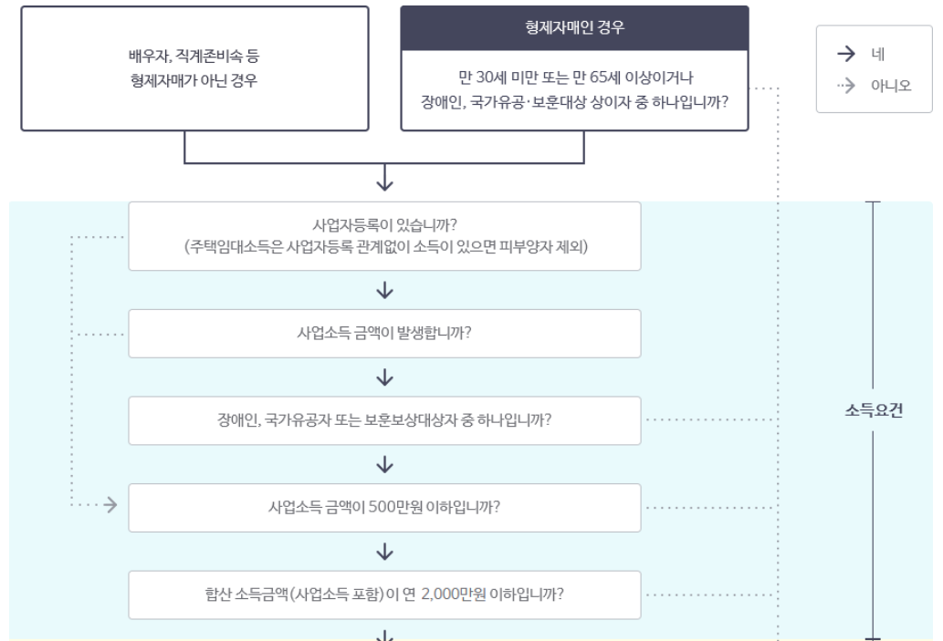 1. 연간 소득 합계액(사업,금융,연금,근로기타소득 등)이 2천만원 이하여야 합니다.