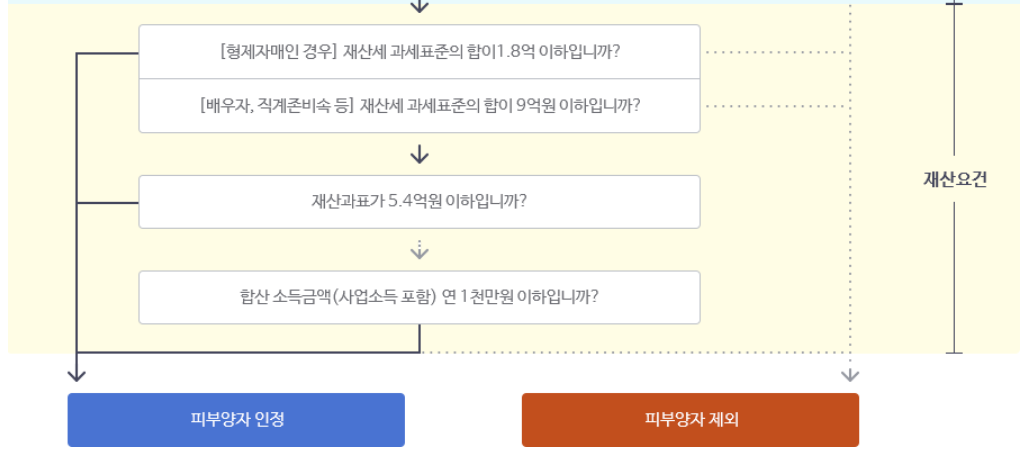 2. 형제,자매는 재산세 과세표준 합계가 1억 8천만원 이하여야 합니다.