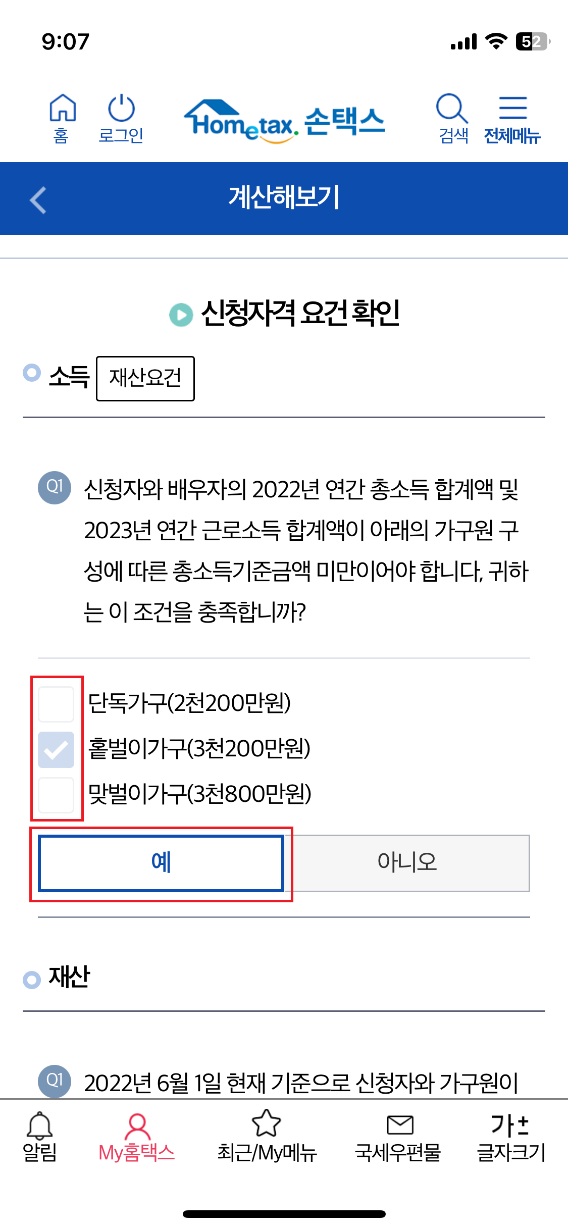 (예시: 배우자O, 부양자녀 1명, 총소득 2800만원)