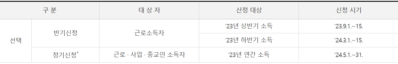 상반기 신청일 ▶ 매년 9월 1일 ~ 9월 15일 ▶ 지급일 12월