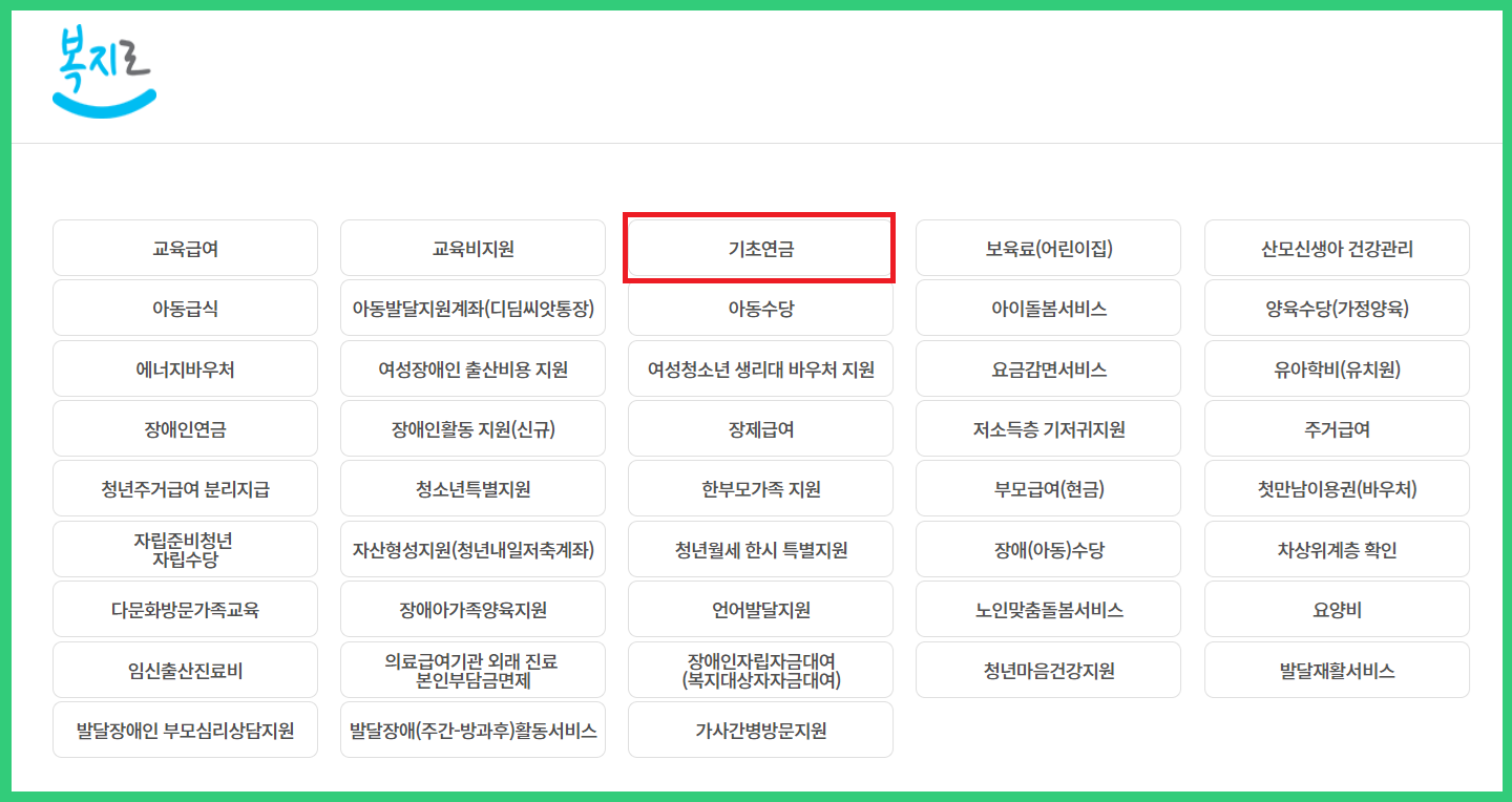2. 기초연금을 선택하셔서 화면을 따라해보세요.