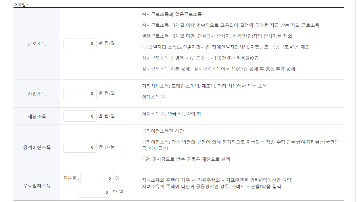 3. 소득정보 입력 ▶ 세전 월 소득 입력, 부부의 경우 배우자의 소득도 입력