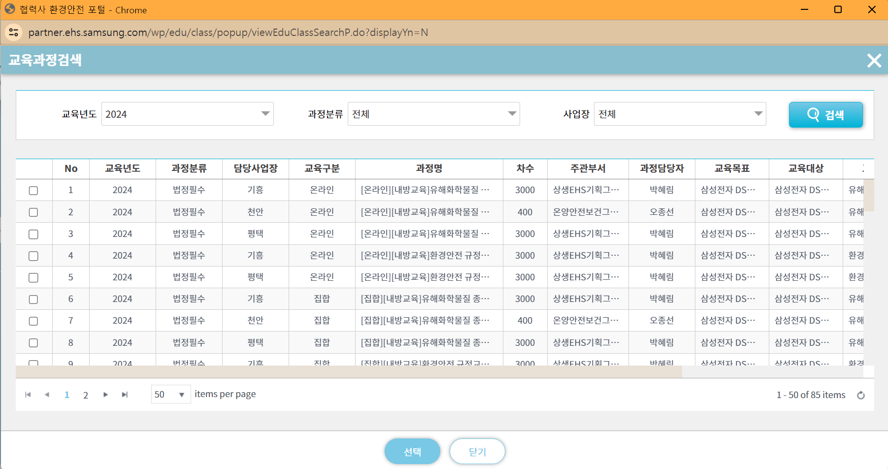 아래는 삼성 협력사 환경안전 포탈 사이트 바로가기 입니다.