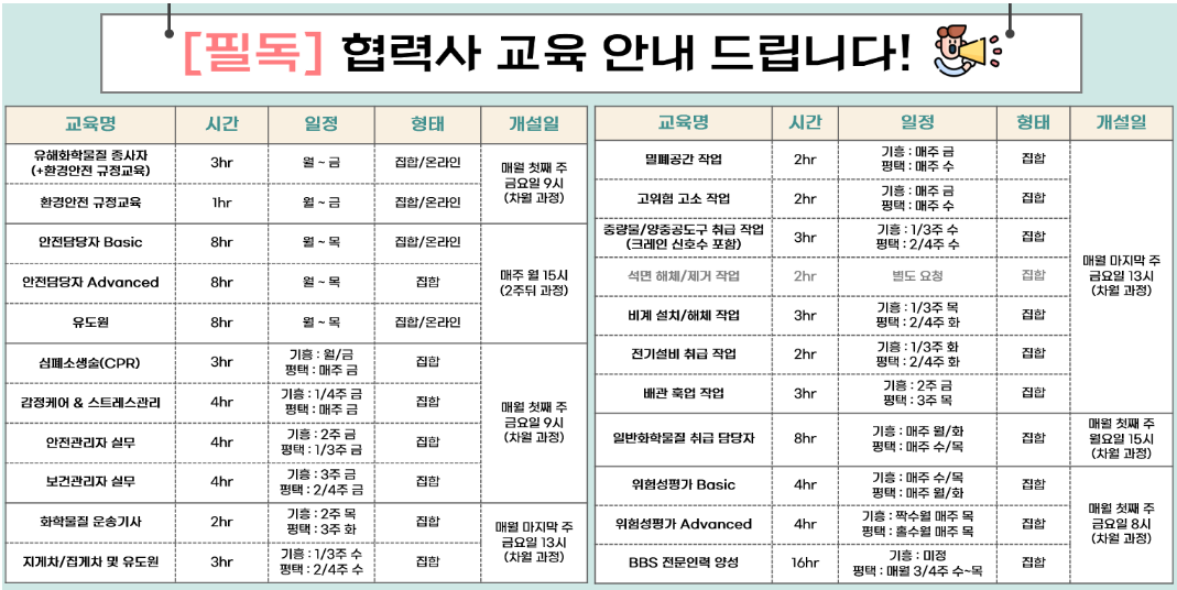 삼성 협력사로서 내방하시는 모든 분들은 내방 목적에 따른 환경안전교육을 필수로 이수하셔야 합니다.