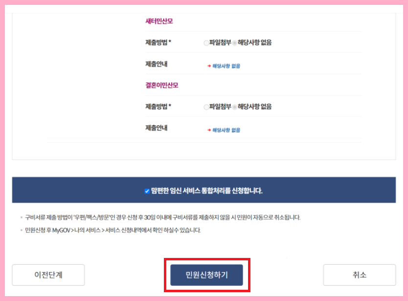 5. 민원신청하기 ▶ 맘편한 임신 지원 서비스 신청 완료