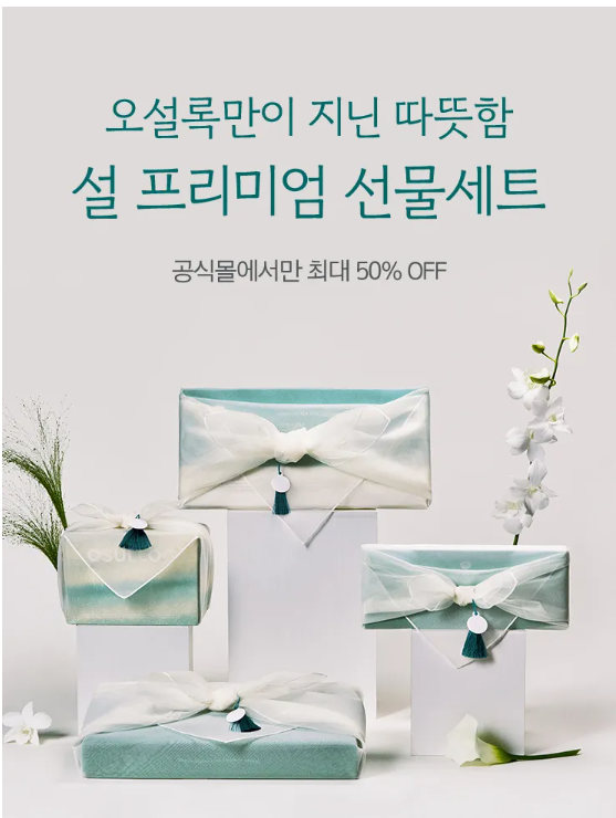 오설록 오직 공식몰에서만 최대 50% 할인! 설에는 오설록으로 따뜻한 마음을 전해보세요.