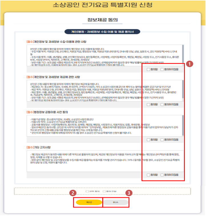 2. 정보제공 동의▶ 모두 동의▶ 확인