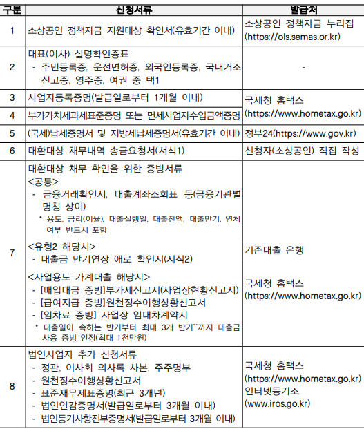 이번에 대환이 가능한 채무 범위도 확장되었습니다. 소상공인이 사업자 대출 외에 보유한 가계대출 중 사업 용도로 사용된 대출(3개 반기 내에 사용)이 증빙자료로 확인되면, 최대 1천만 원까지 대환이 가능합니다. 이로 인해 사업 운영에 필요한 자금 마련이 한결 수월해질 것으로 보입니다.