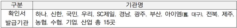 대출 지원을 위한 확인서는 다음 15개 기관에서 발급 가능합니다.