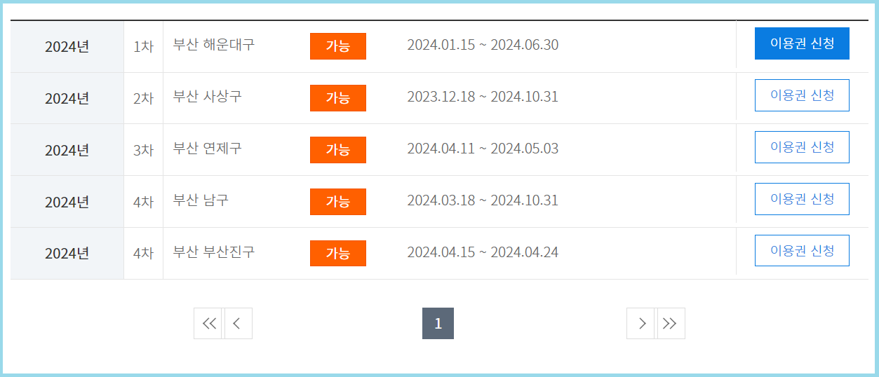 3. 신청가능 기간 확인 ▶ 이용권 신청 클릭