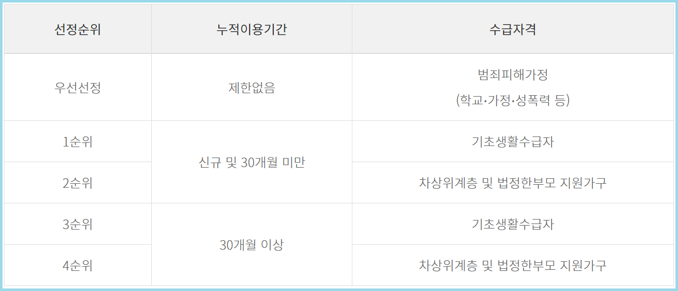 범죄피해가정, 기초생활수급자, 차상위계층, 법정한부모가족 중 하나에 해당