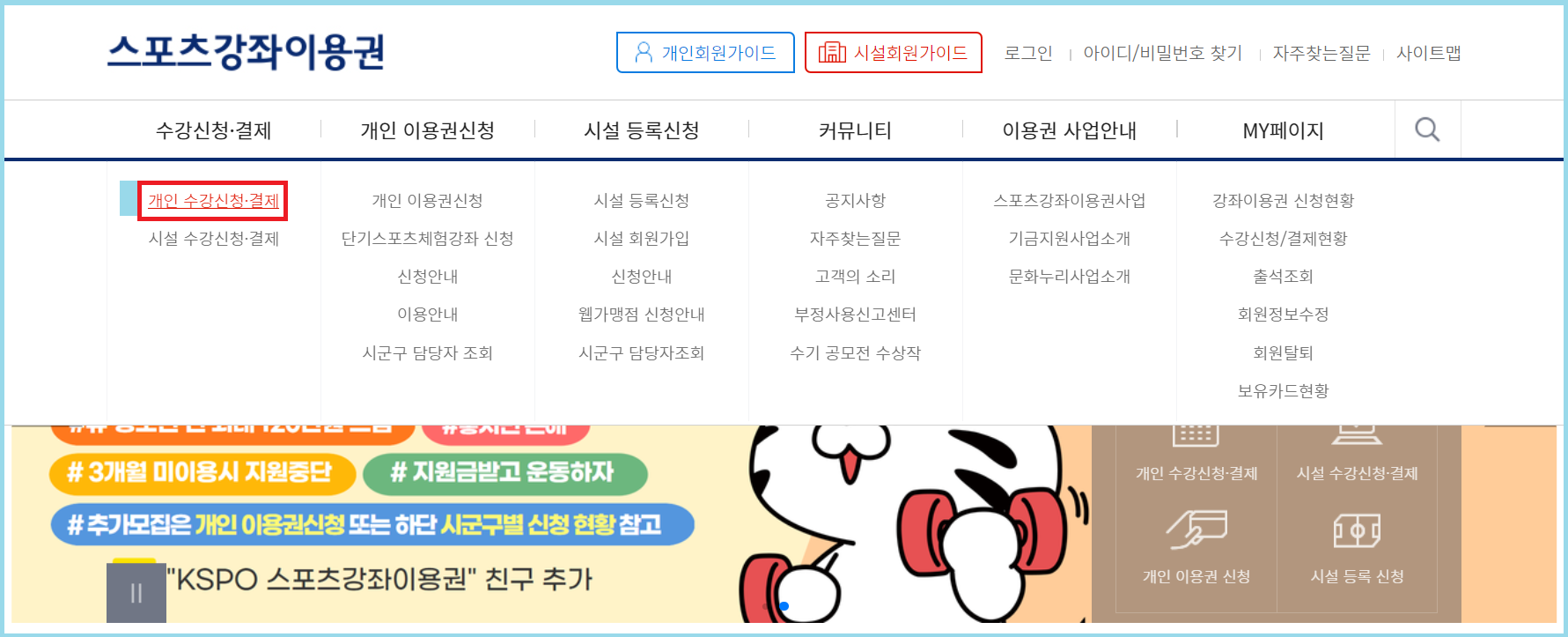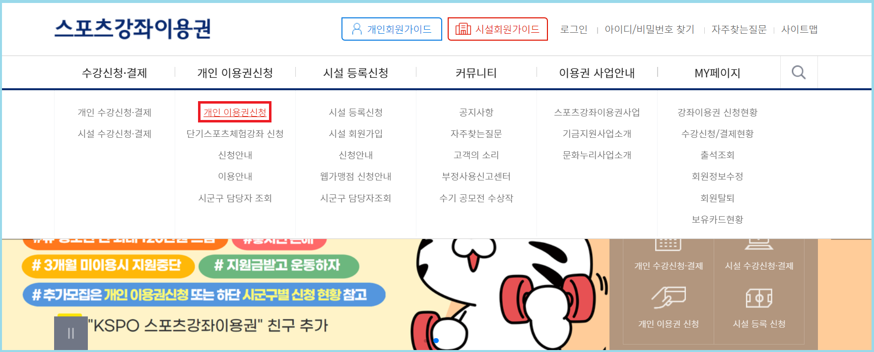 개인 이용권신청 | 개인 이용권신청 | 스포츠강좌이용권