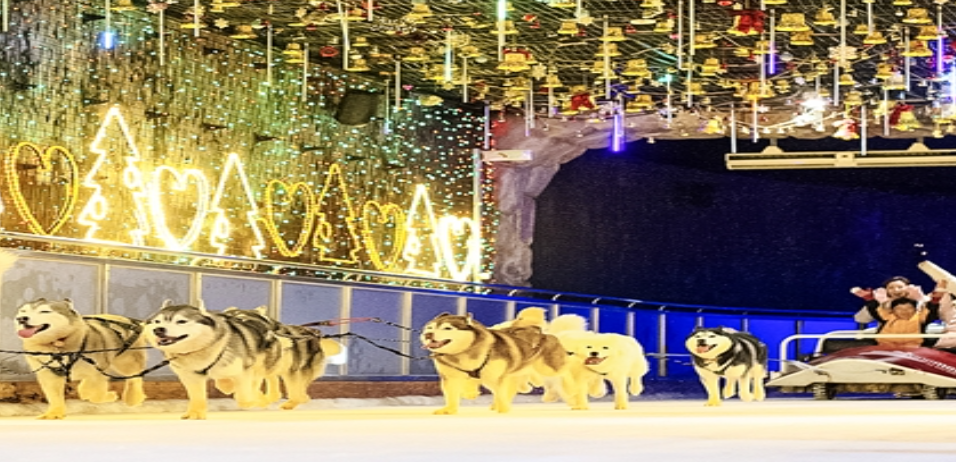 실내 미니썰매장, 아이스 레이크, 회전목마, 고속 썰매 활주 공간 등 20개 이상의 놀이시설과 오로라 쇼, 스노우 쇼 등 다채로운 볼거리를 제공합니다.