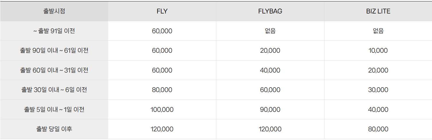 ✅FlyBag/FlyBag+ 운임 취소 수수료