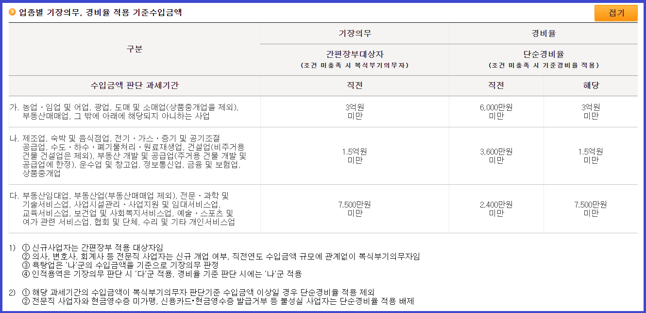 [업종별 기장의무 기준]