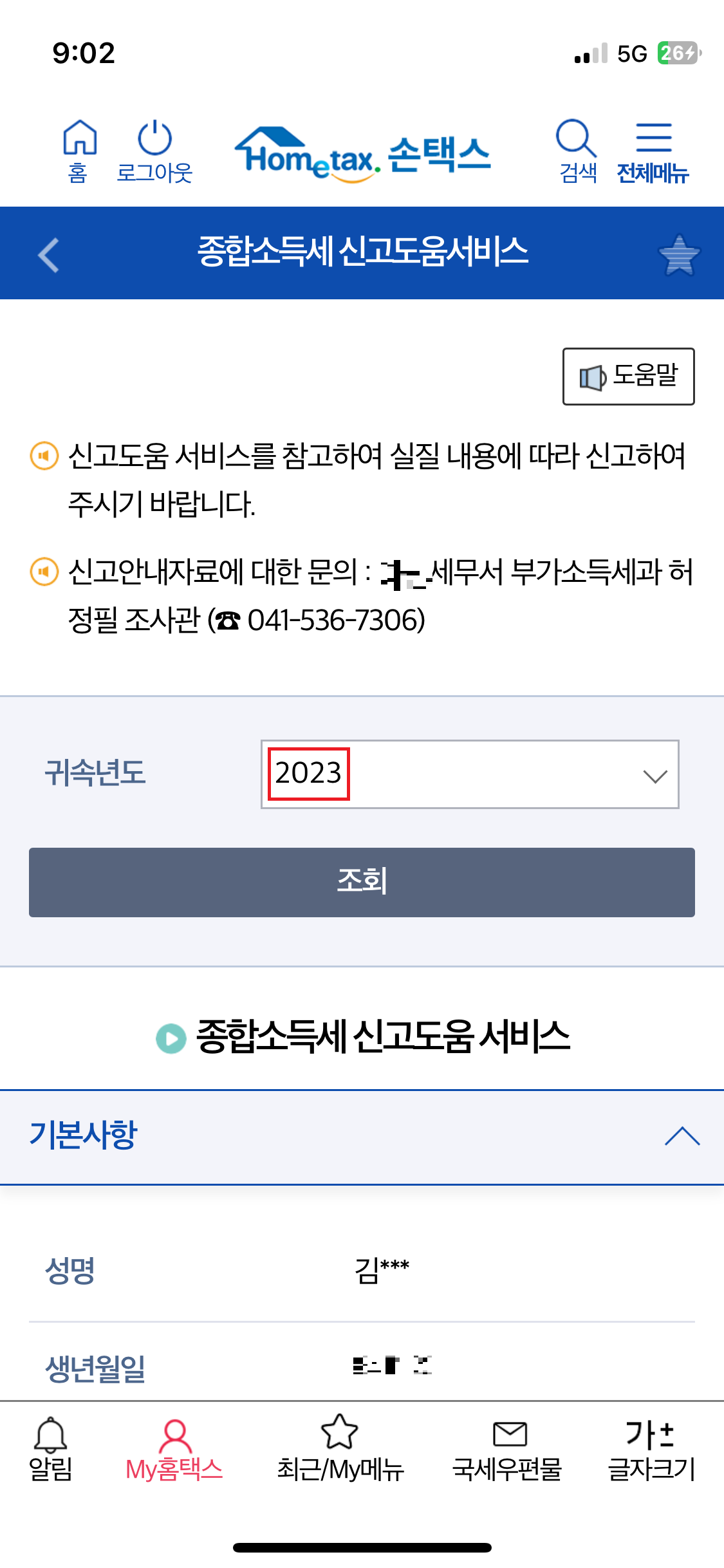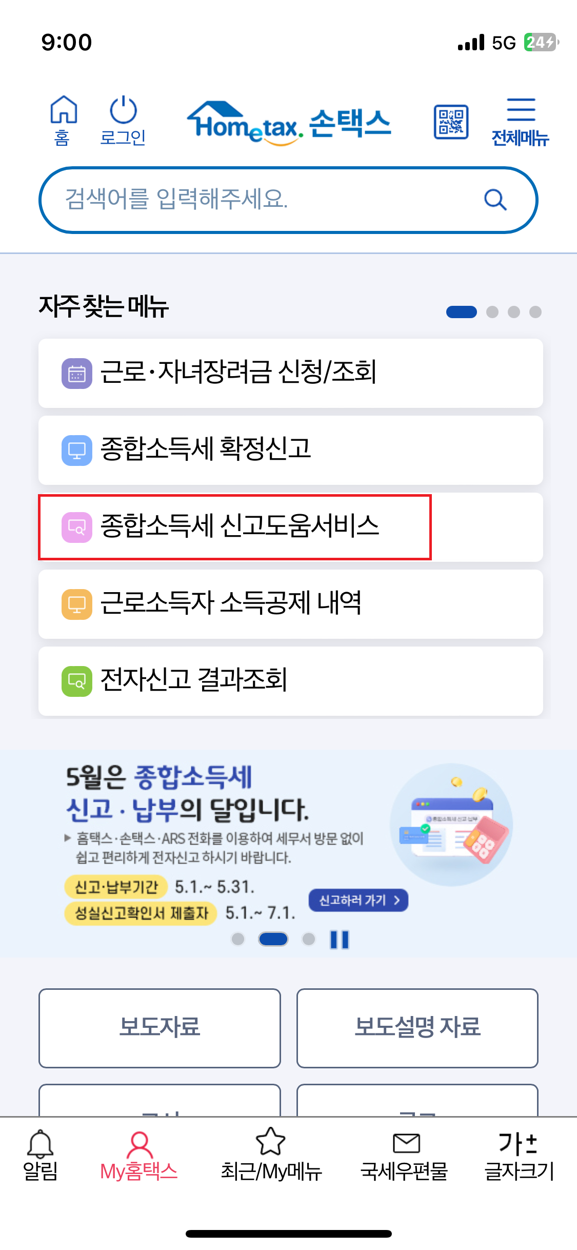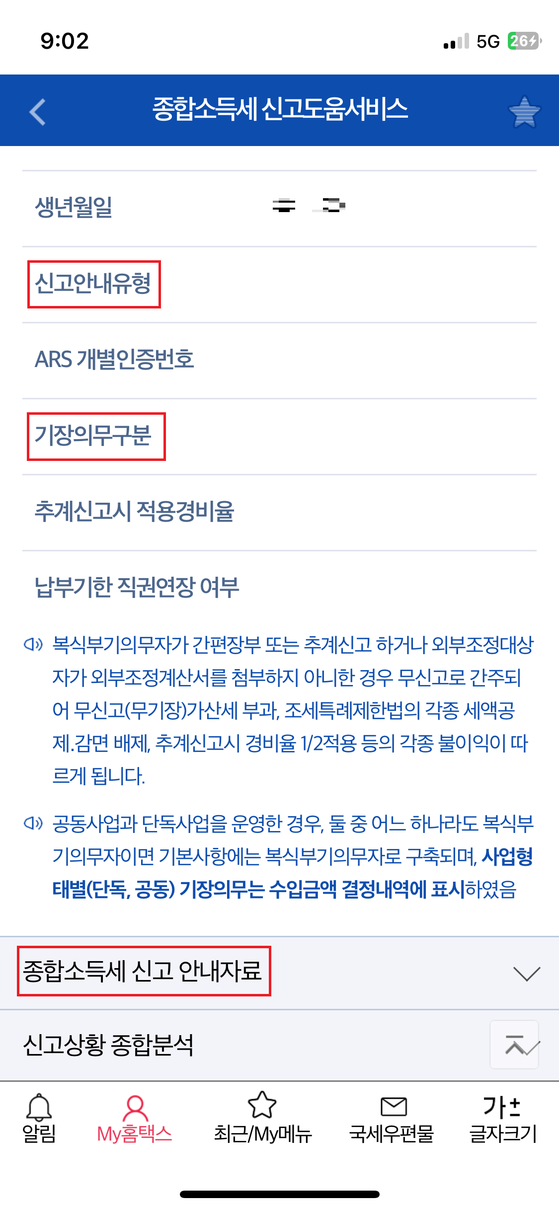 5. 종합소득세 신고 안내 정보를 확인하실 수 있습니다.
