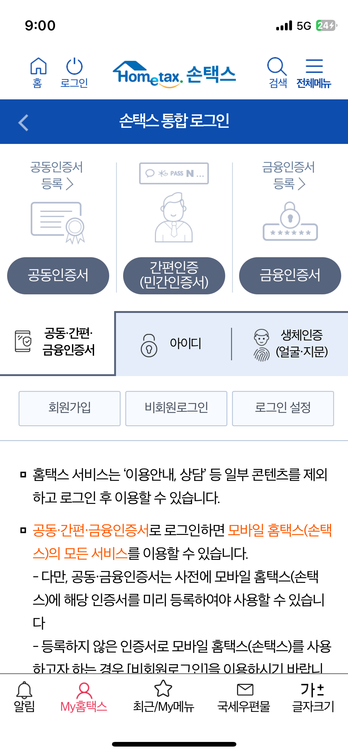 2. 간편인증 등을 통해 로그인 합니다.