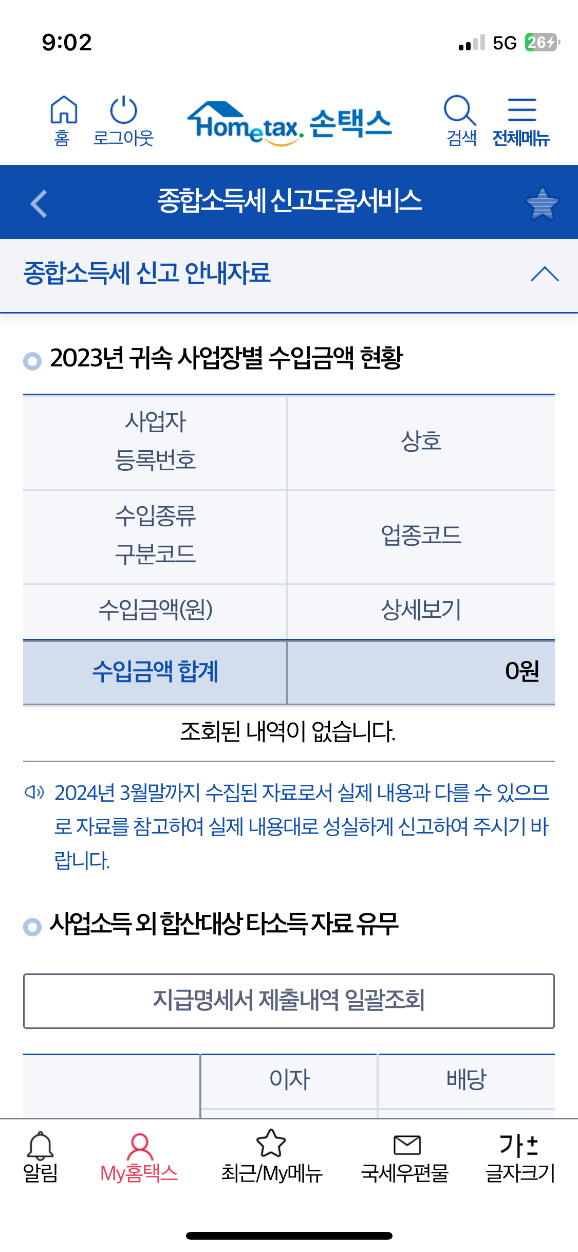 종합소득세 신고 대상 조회
