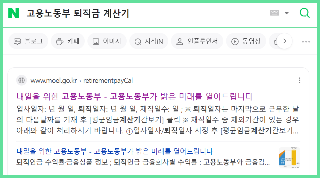 1. 고용노동부 퇴직금 계산기(https://www.moel.go.kr/retirementpayCal.do) 접속