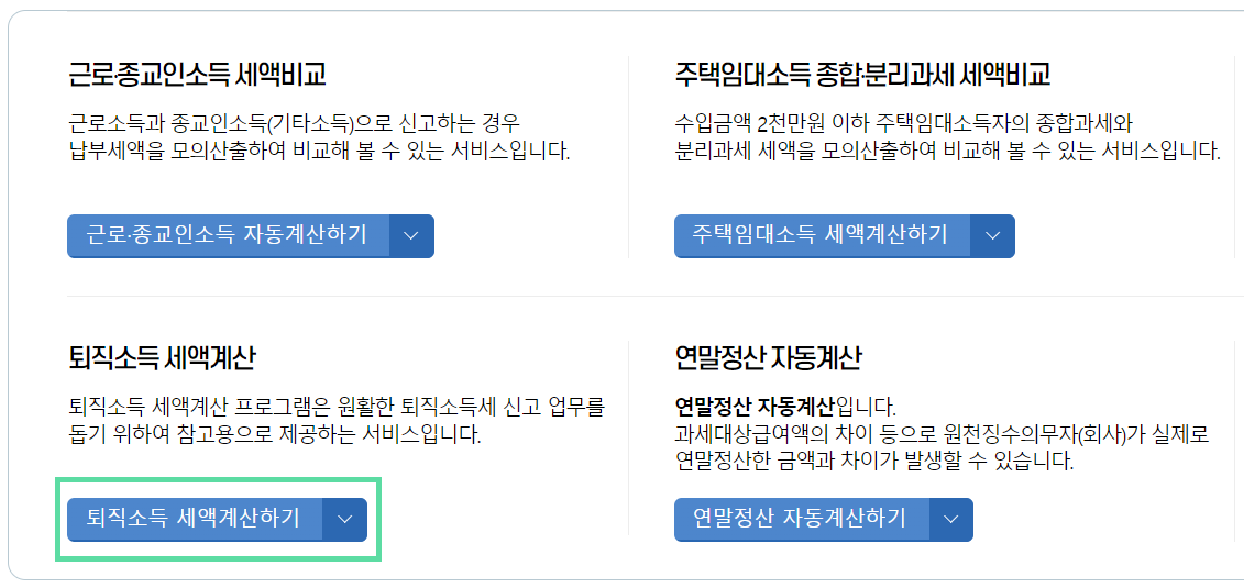 여기까지 퇴직소득세를 직접 구하는 방법이었습니다. 상당히 복잡하고 어렵기 때문에 자동계산을 추천드립니다.
