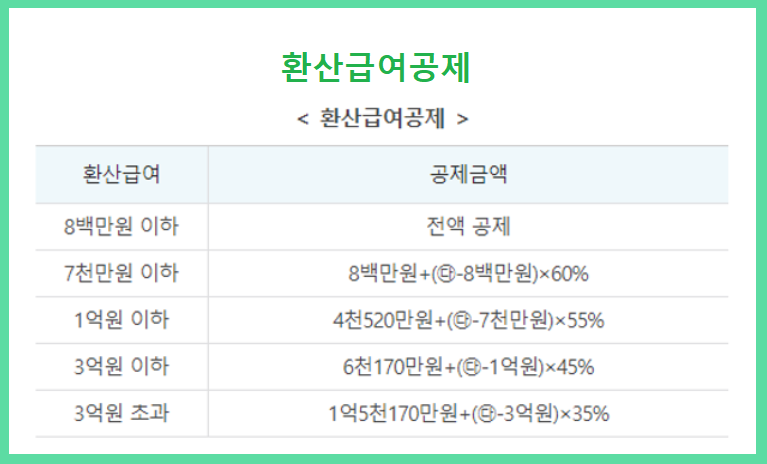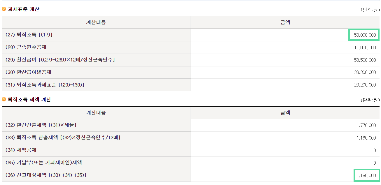⑥ 환산급여액에서 환산급여공제를 적용한 금액이 과세표준이 됩니다.