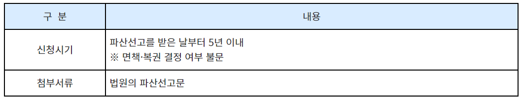 파산선고를 받은 날부터 5년 이내에 신청 가능하며, 면책·복권 결정 여부 불문 신청할 수 있습니다.