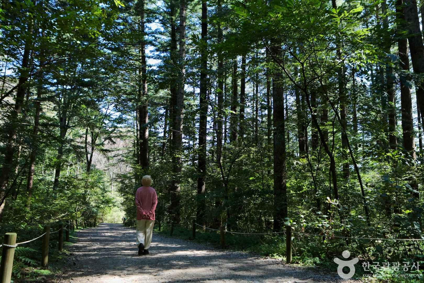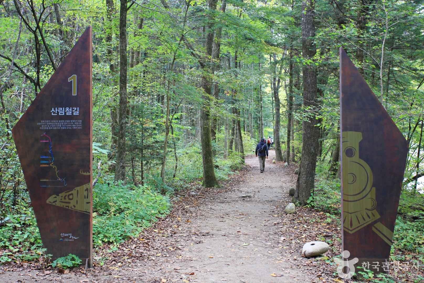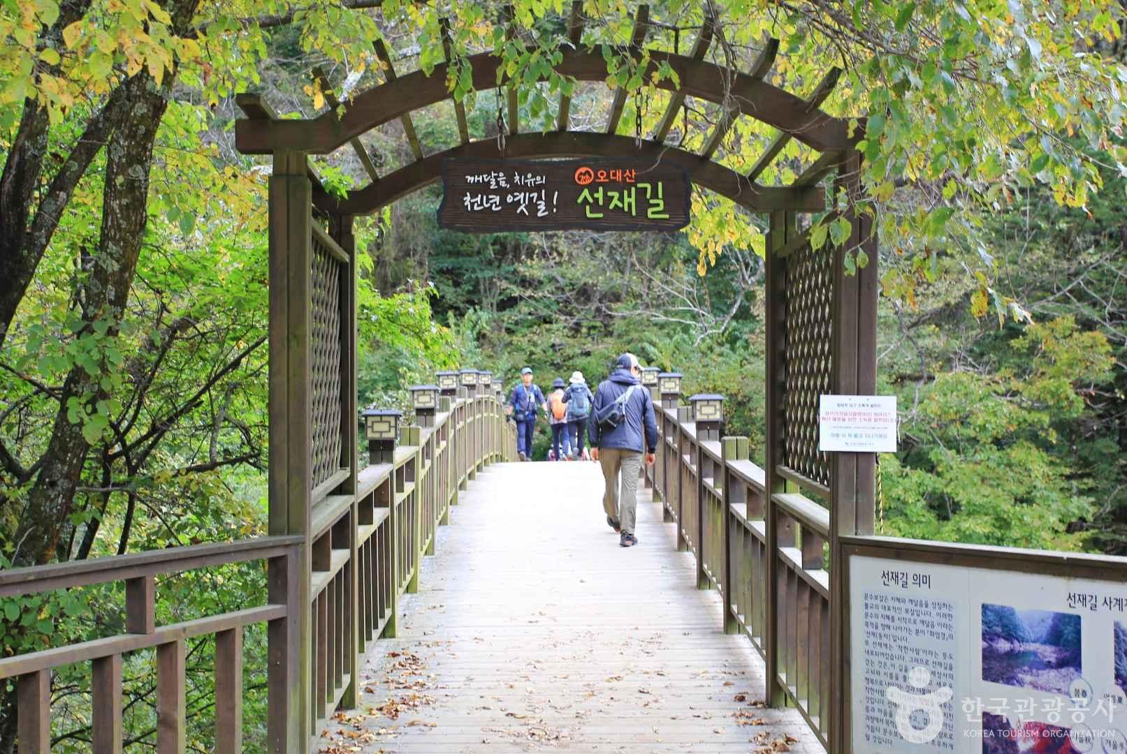우리나라 3대 전나무 숲으로 꼽히는 월정사 전나무 숲길을 지나면 본격적인 선재길이 시작됩니다. 약 9km의 본 코스는 5개의 테마 구간(산림철길, 조선사고길, 거제수나무길, 화전민길, 왕의길)으로 나뉘어 있어요.
