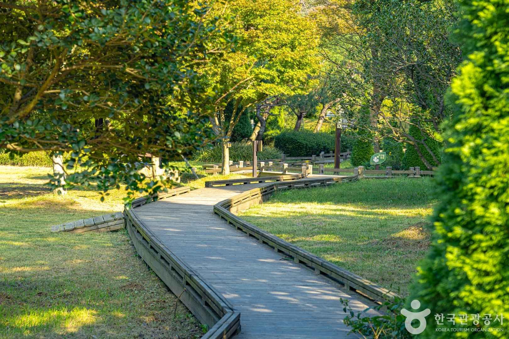 1.6km의 산책길을 따라 120여 종, 2만여 그루의 나무들이 울창한 숲을 이루고 있습니다. 개서어나무, 느티나무 등 다양한 수종의 나무들이 어우러져 있어요.