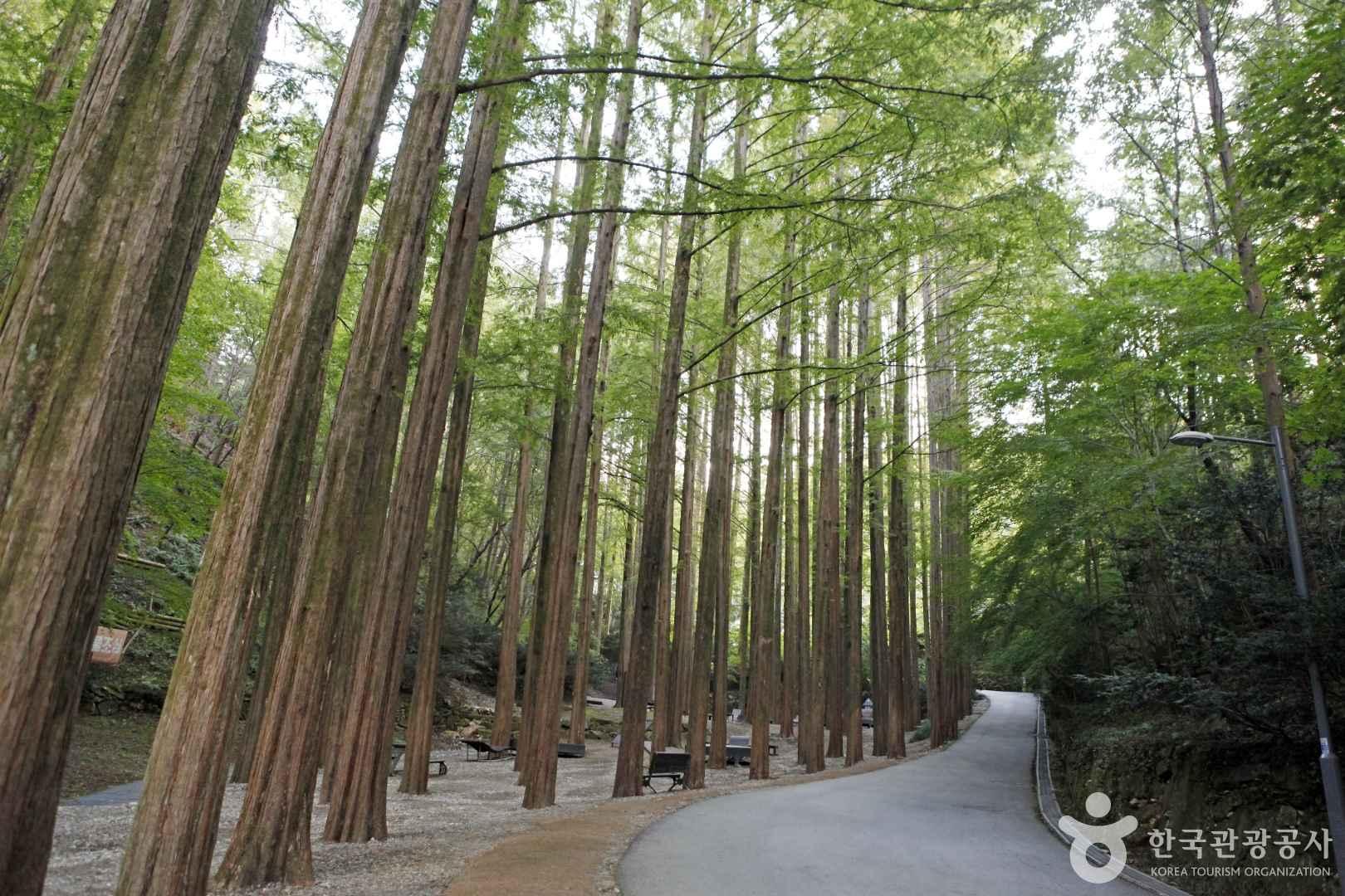 장태산자연휴양림의 주인공은 단연 메타세쿼이아입니다. 가을이면 붉은 단풍으로 물든 메타세쿼이아가 장관을 이루죠.