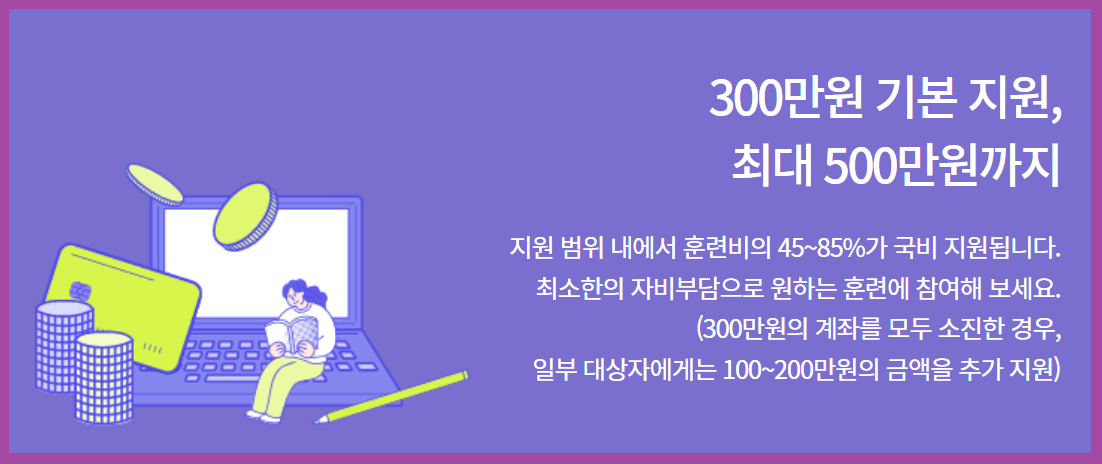 급격한 기술 발전에 적응하고 노동시장 변화에 대응하는 사회안전망 차원에서 생애에 걸친 역량개발 향상 등을 위해 정부에서 국민 스스로가 직업능력개발훈련을 실시할 수 있도록 훈련비 등을 지원하는 사업입니다.