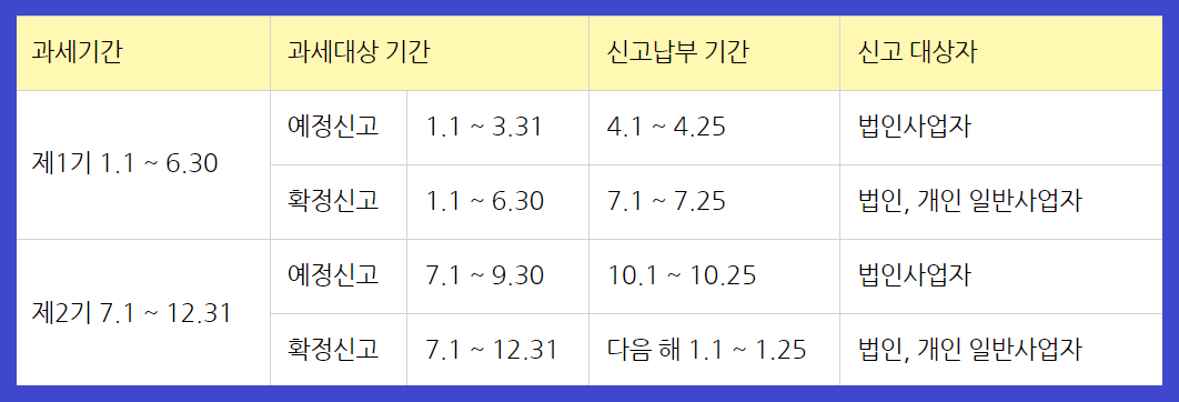 ▶ 법인사업자는 1년에 4회, 개인사업자는 2회 신고합니다.