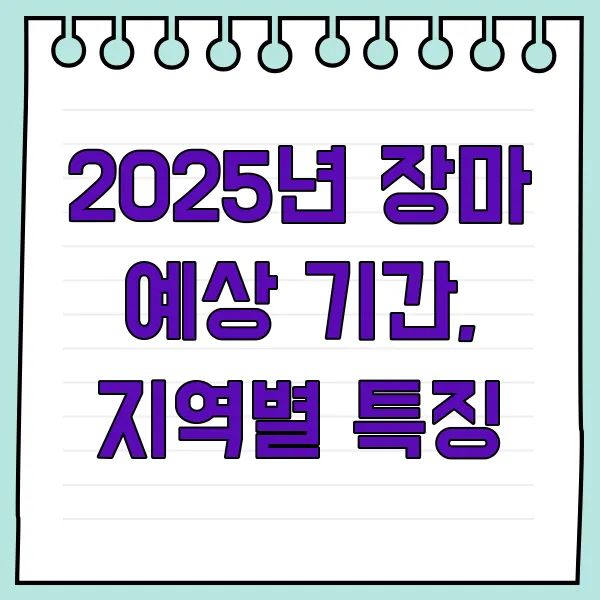 2025년 장마는 지역별로 약간의 차이를 보일 것으로 예상됩니다. 각 지역별 예상 시작일과 종료일은 다음과 같습니다.