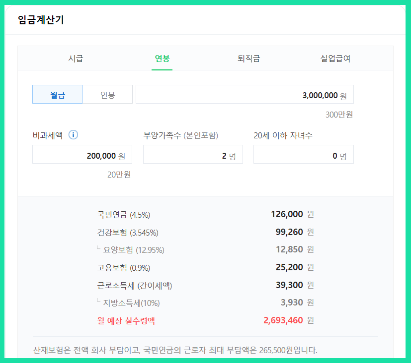 월 예상 실수령액을 바로 확인하실 수 있습니다.